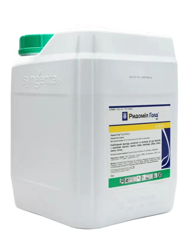 Ридомил Голд МЦ — лидирующий фунгицид мирового рынка на основе металаксил-М и манкоцеба. Обеспечивает надёжную защиту картофеля, томата и других культур от фитофтороза и пероноспороза. Экономичная фасовка 5 кг.
