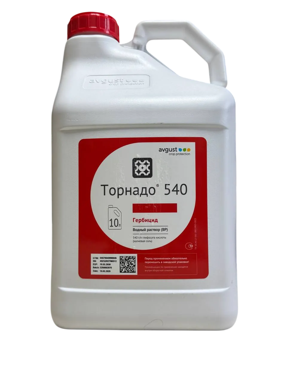 Торнадо 540 — системный гербицид сплошного действия с повышенной концентрацией глифосата (540 г/л). Экономичная фасовка 10 л для обработки больших площадей.